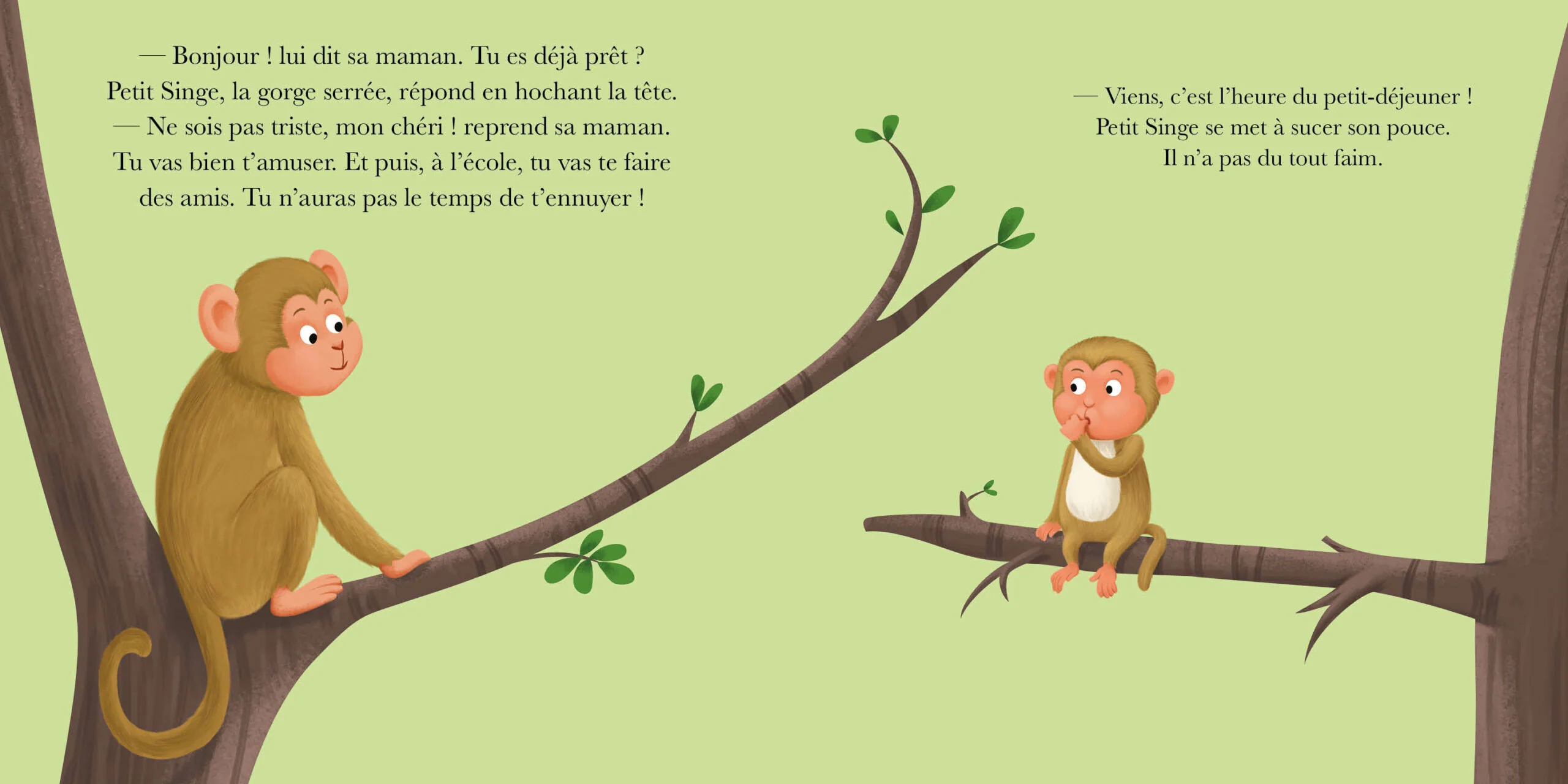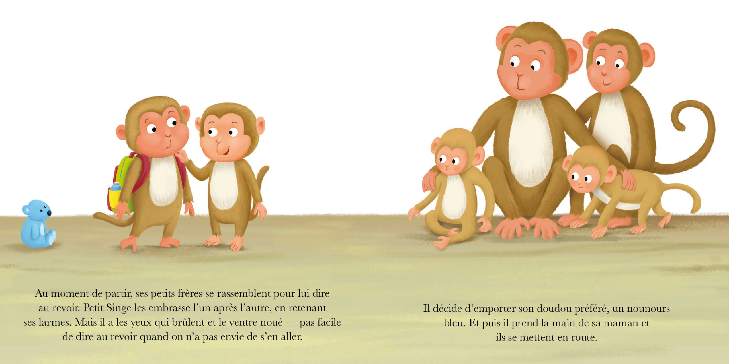 C’est la rentrée. Petit Singe est triste: il ne veut pas quitter sa maison, il ne veut pas non plus quitter sa maman. Comment surmonter tant de chagrin?