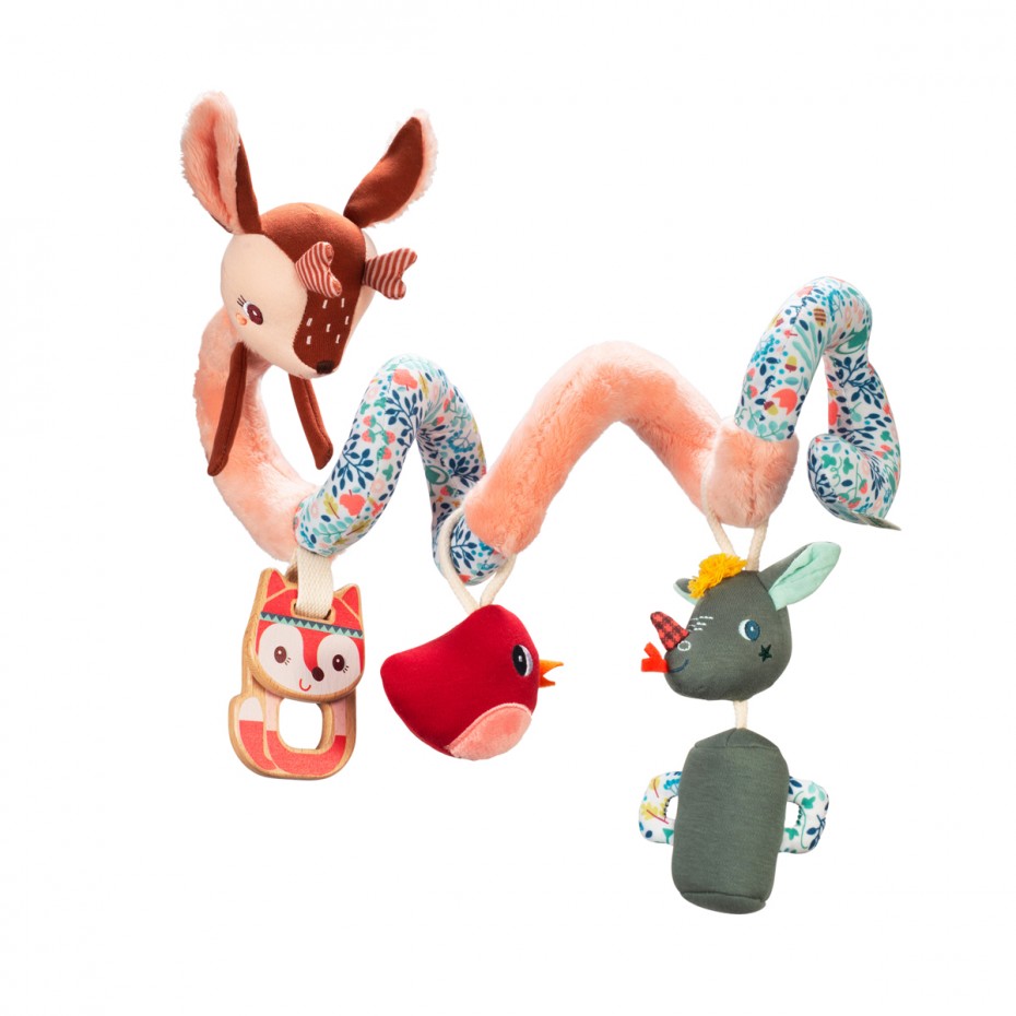 Des sons et textures étonnants, des couleurs contrastantes…, Cette spirale offre une multitude d’activités, conçues pour stimuler les sens de bébé pendant la promenade ou en voiture.