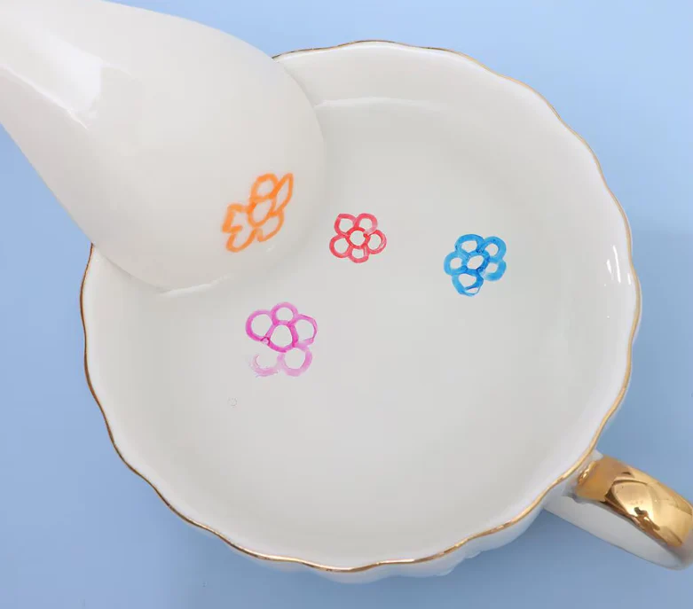 Utilisez ce stylo flottant pour tableau blanc pour peindre avec la cuillère en céramique. En contact avec l’eau, le dessin flotte, comme s’il était vivant !