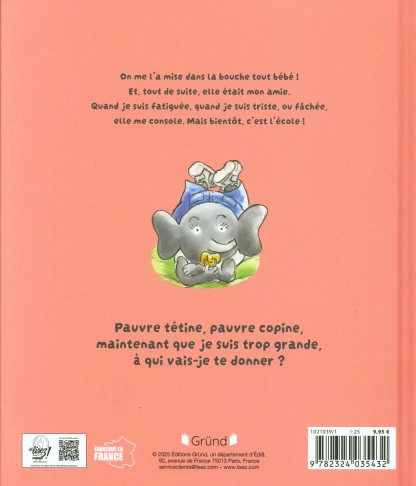 Le livre Tétine, ma copine ! raconte l’histoire d’une petite éléphante qui, depuis sa naissance, considère sa tétine comme sa fidèle amie. Elle l’emmène partout : pour se consoler, se rassurer ou simplement s’endormir.
