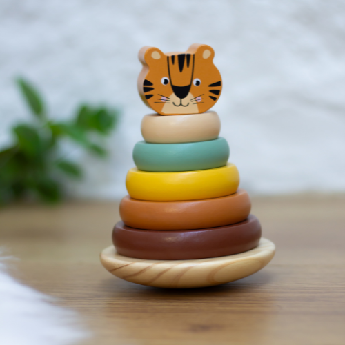 Nous l’appellerons l’incontournable de vos minis. La tour à empiler est composée de six anneaux en bois colorés ainsi que d’une tête de tigre à piquer. Ce qu’on aime ? Ces jolis couleurs 😍