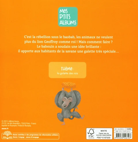 Mais comment faire ? Le babouin a soudain une très bonne idée: il apporte aux habitants de la savane une galette très spéciale pour désigner le nouveau roi …