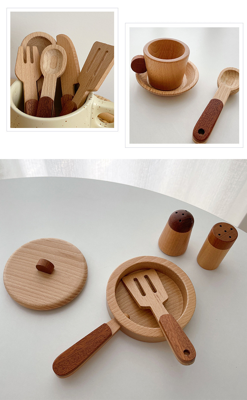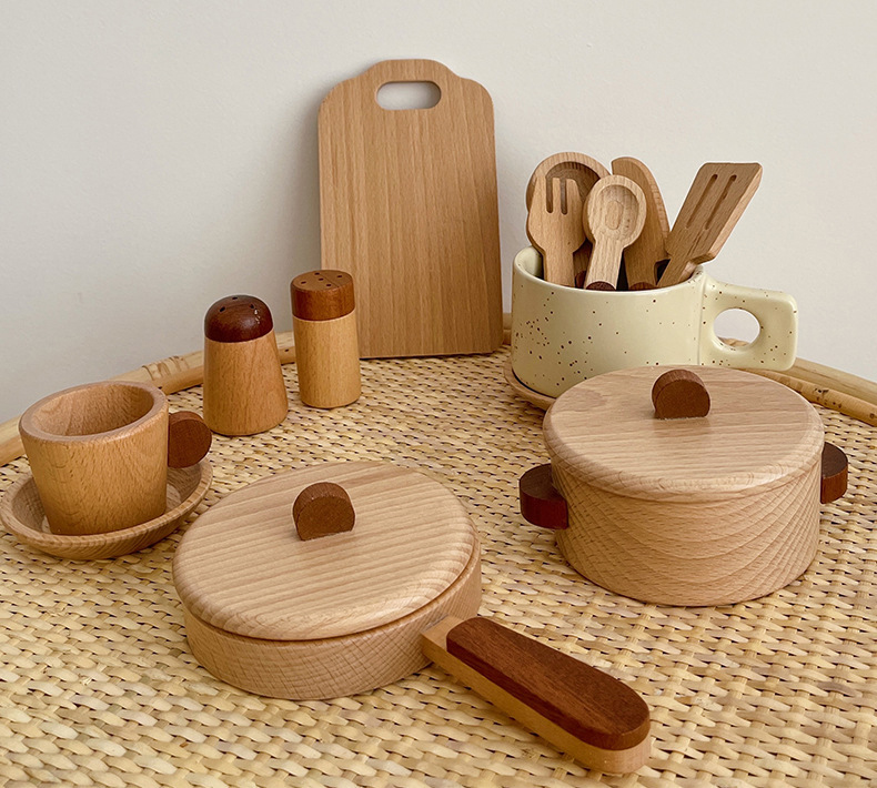 – Ustensiles en bois – 15 pièces de haute qualité – Votre enfant se prendra pour un vrai petit chef