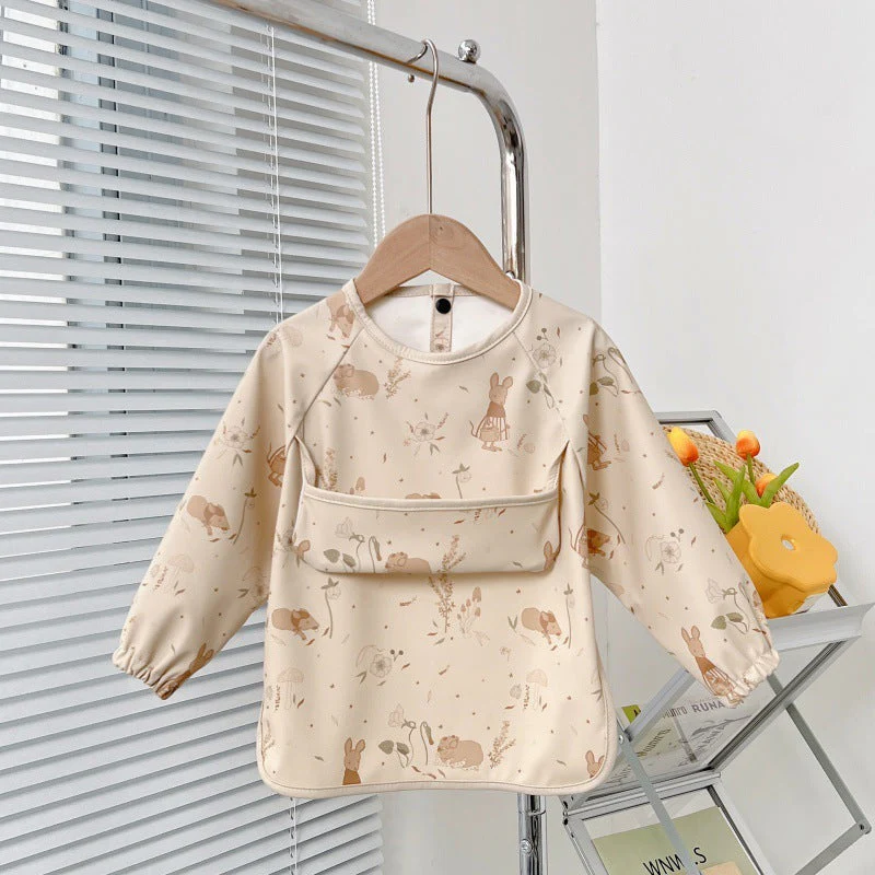 Avec une fermeture facile à l’arrière, ce bavoir est simple à enfiler et à retirer. Les manches longues assurent une protection complète, couvrant même les bras de votre enfant. -