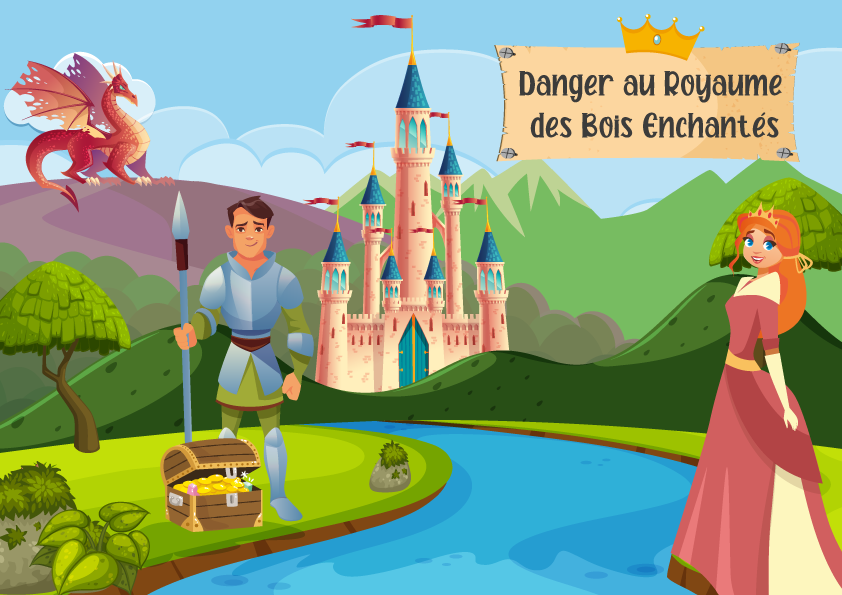 En effet, notre histoire se déroule dans un monde magique et imaginaire, le Royaume des Bois Enchantés. Ainsi, dans cette chasse au trésor chevalier, le Chevalier Albert et la Princesse Ida partent à la recherche de la couronne magique volée pendant la nuit au Château des Bois. Qui a bien pu dérober ce précieux trésor sans que personne ne s’en aperçoive ? Par ailleurs, une lettre mystérieuse déposée au château intrigue le Roi Francis. Il faut vite enquêter pour retrouver le trésor. Le Roi est également très inquiet car la couronne de la Princesse détient des pouvoirs magiques très puissant. De ce fait elle ne doit absolument pas tomber entre de mauvaises mains !