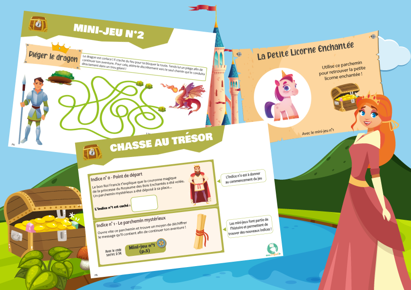Découvrez un de nos jeux anniversaire sur le thème de la fantaisie et des contes de fées avec cette chasse au trésor épique et magique ! Que tu sois une princesse courageuse et aventurière, ou bien un chevalier brave et sans peur, cette chasse au trésor dans le monde des contes de fées est pour toi !