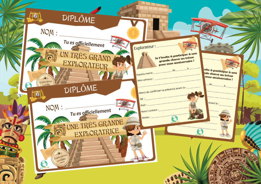 Par ailleurs ce kit de chasse au trésor explorateur est mixte pour une idée anniversaire enfant originale (diplôme princesse et prince)