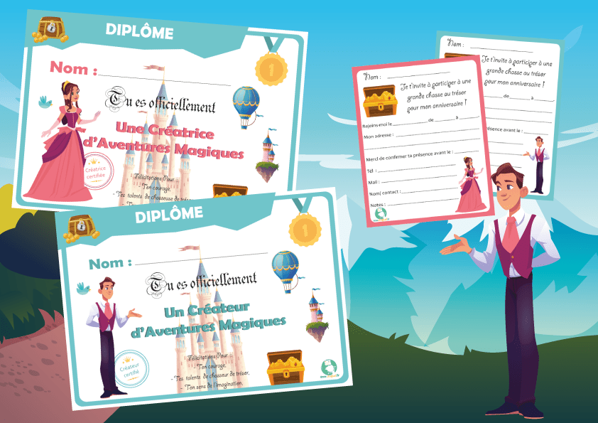 Par ailleurs ce kit animation anniversaire est mixte pour une idée anniversaire enfant originale (diplôme princesse et prince)