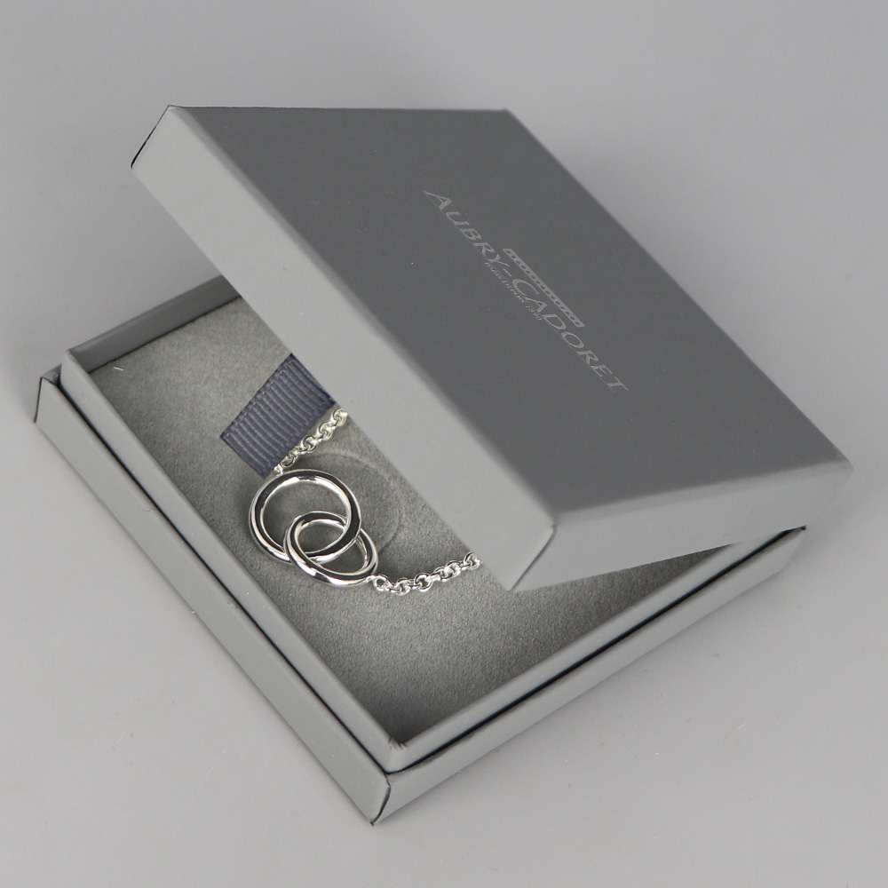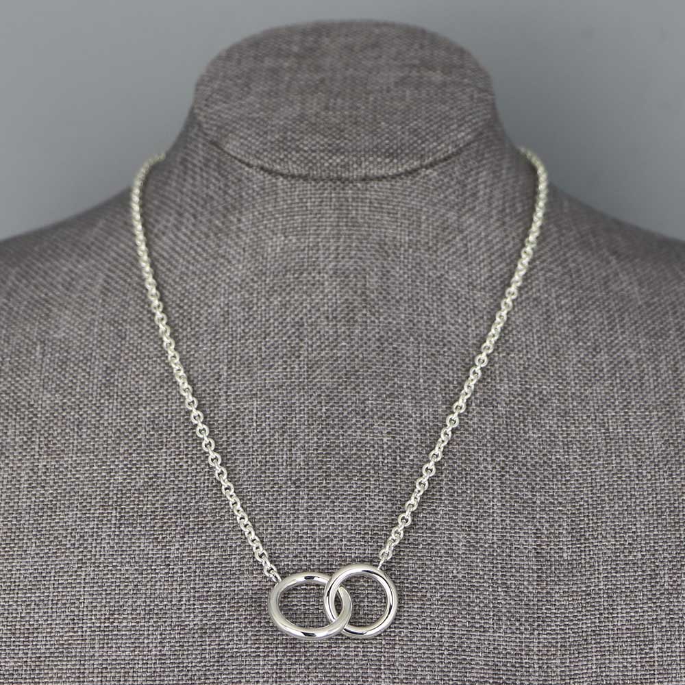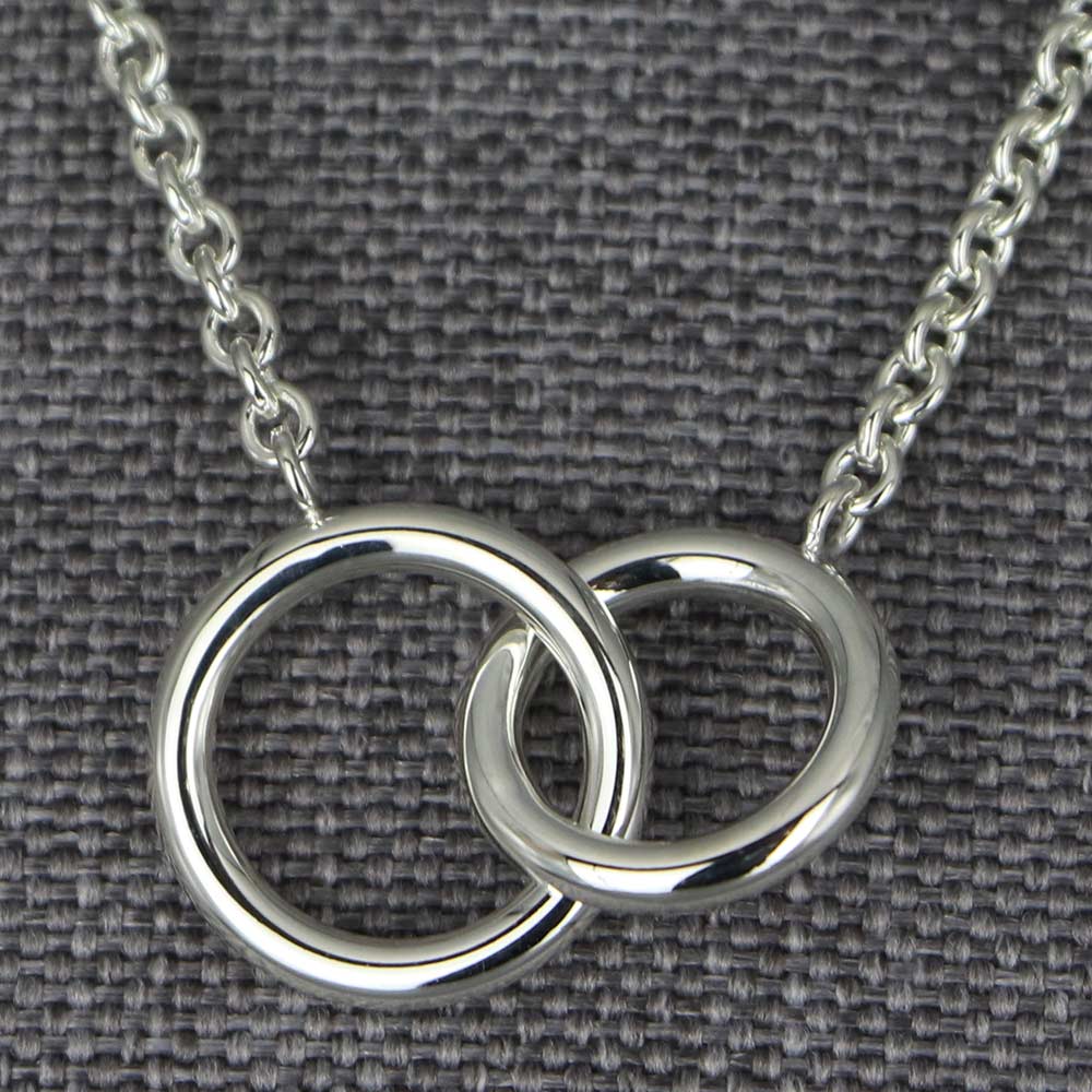 Collier en Argent massif. Collier femme orné de deux anneaux entrelacés. Fabrication française.