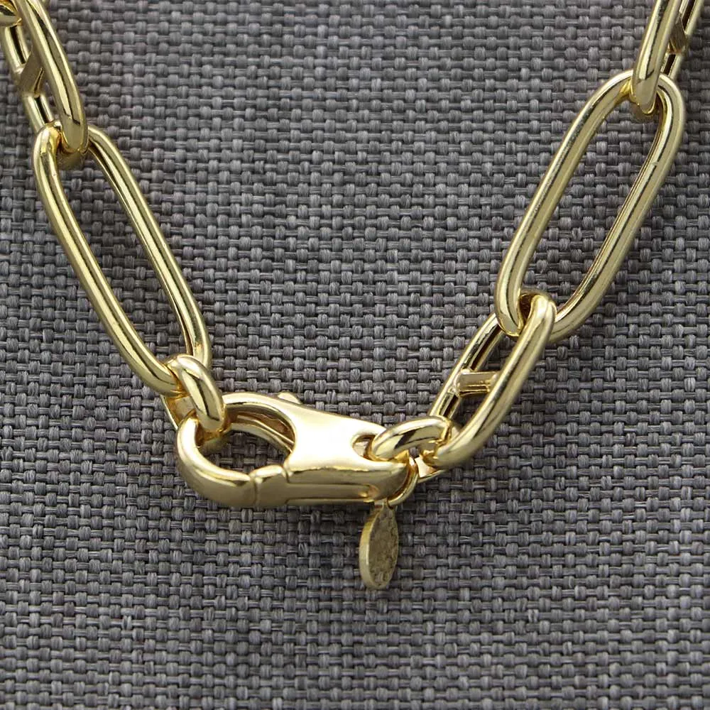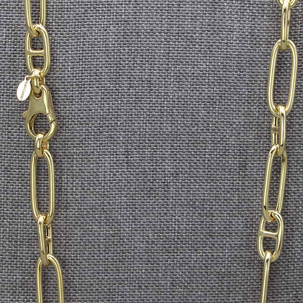 Collier en Argent massif doré. Argent massif 925 finition or 18 carats 2 microns. Collier femme constitué d’une alternance de mailles marines 16×8 mm et de mailles ovales 24×9 mm.