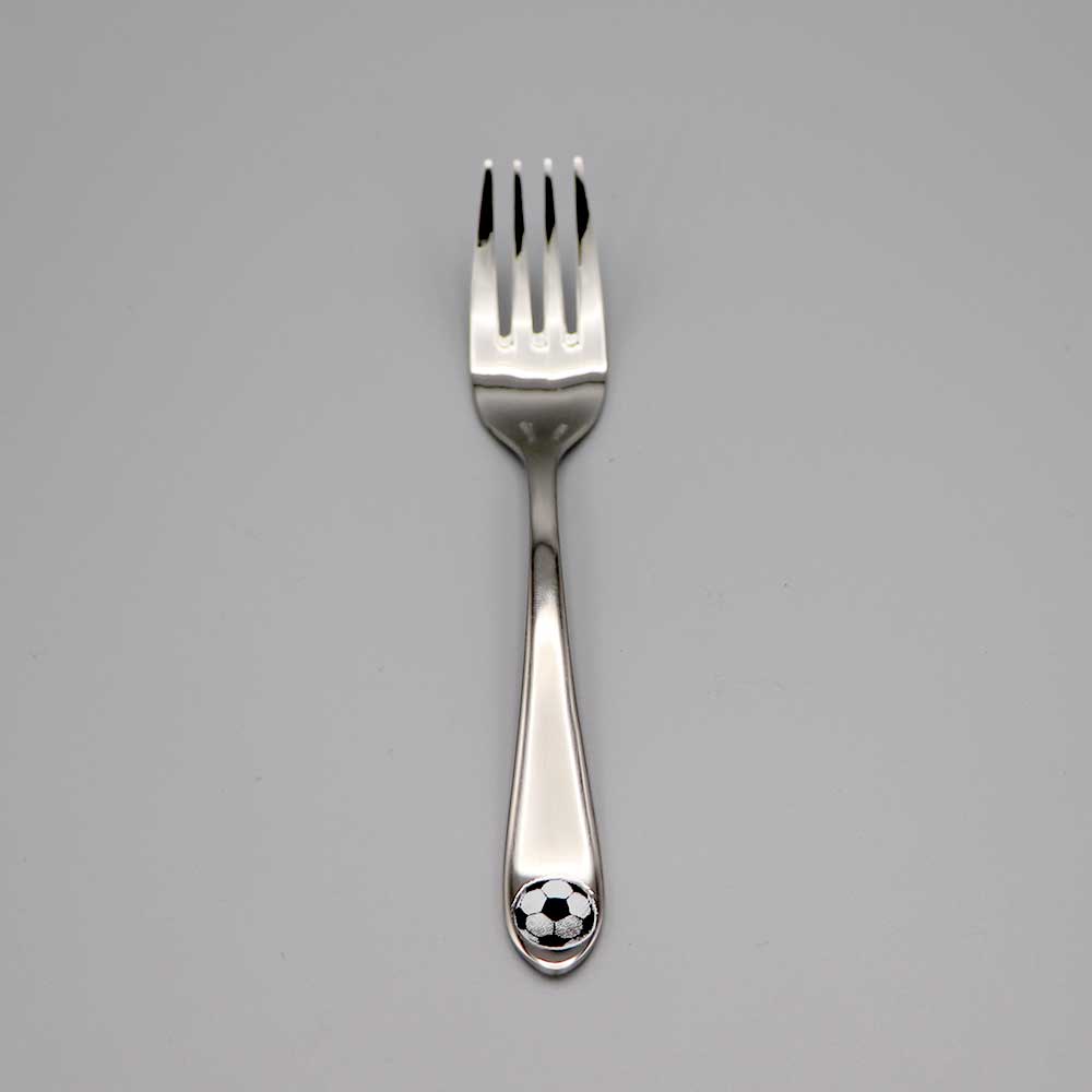 Couverts enfant en inox avec un ballon de foot en décoration.