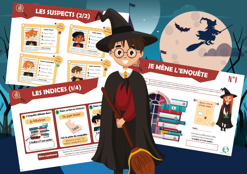 Si tu acceptes cette mission, il te faudra trouver des indices cachés dans la maison, réussir des jeux et énigmes totalement magiques, et ne pas flancher au moment de nommer le coupable de ce terrible vol magique et mystérieux.