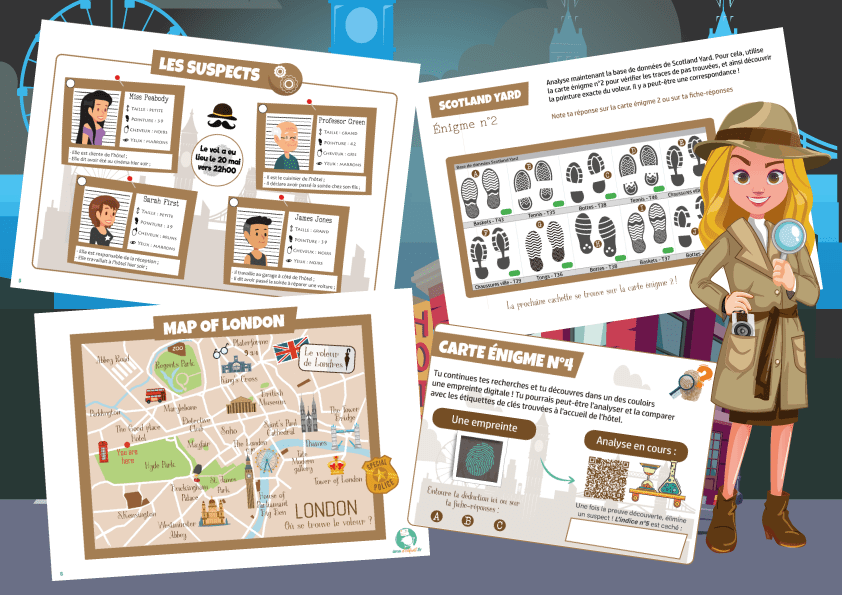Es-tu prêt(e) à rejoindre le club des détectives pour arrêter le voleur de Londres, et ainsi retrouver l’espion MacDylan et sa mallette volée ?