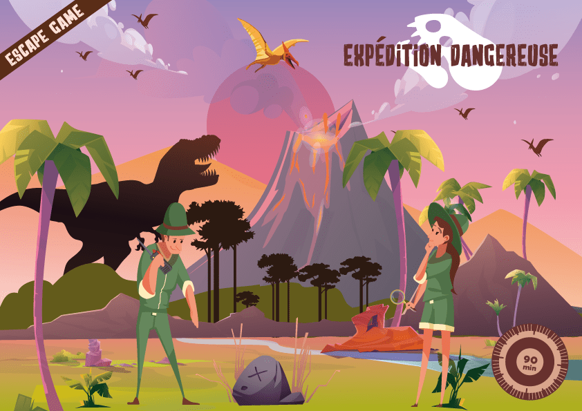 Dans cet escape game sur le thème des dinosaures et de l’aventure, réussis à t’échapper à temps de l’île mystérieuse avant l’éruption du volcan ! Découvre un monde perdu et mystérieux fait de dangers et d’énigmes, et trouve le moyen de t’échapper grâce aux différents indices laissés derrière eux par d’anciens explorateurs sans frontières.