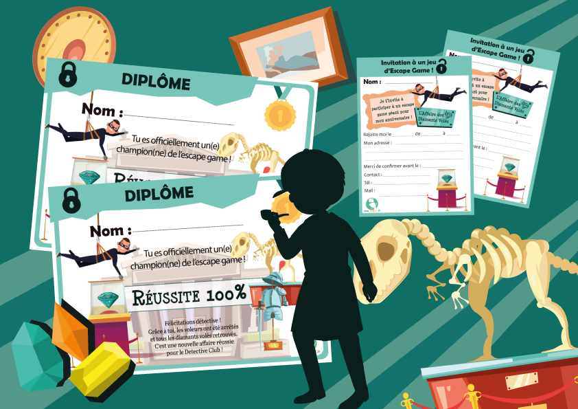 Vos enfants réussiront-ils à arrêter les voleurs de diamants dans le temps imparti ? Découvrez un kit complet d’escape game « Vol au Musée » pour ravir les enfants les plus aventureux, et les fans de Arsène Lupin & de Sherlock Holmes ! Laissez-les profiter d’un moment ludique en famille ou entre copains, en leur proposant une véritable aventure à suspense !