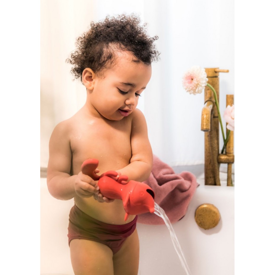 Alice la renarde tient compagnie aux tout-petits dans la baignoire. Elle flotte gaiment ou remplit son ventre d’eau et en fait ensuite gicler partout autour d’elle avec beaucoup de plaisir.