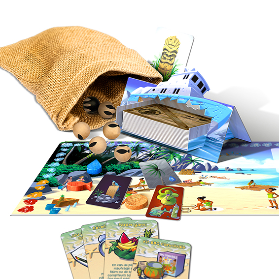 A chaque tour les joueurs naufragés devront choisir une action parmi quatre : pêcher, recueillir de l’eau, chercher du bois ou fouiller l’épave du bateau.