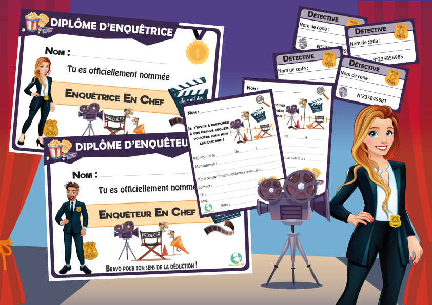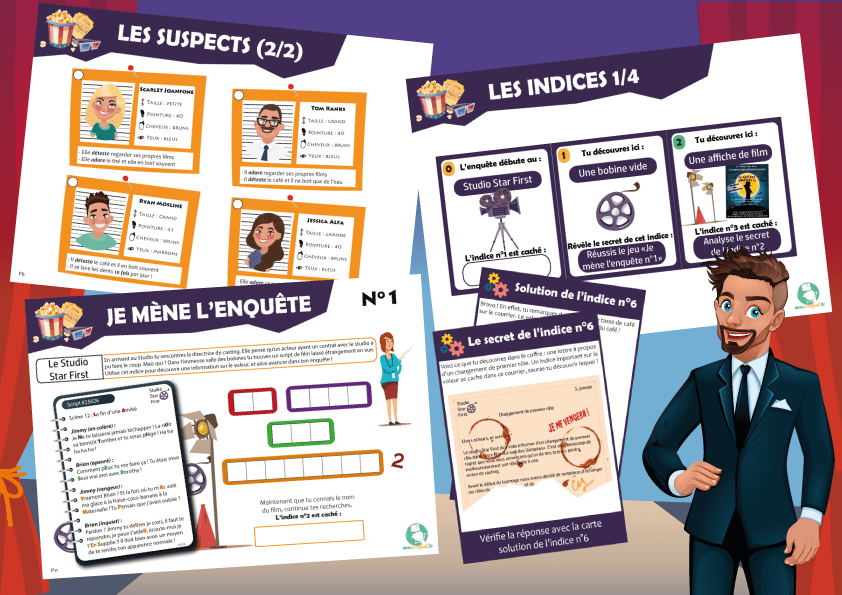 A noter : Notre kit d’énigme policière thème cinéma nécessite l’organisation et la présence d’un adulte pour son bon déroulement.