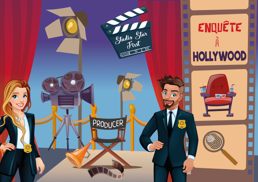 Dans cette enquête policière sur le thème du cinéma et de Hollywood, les enfants pourront découvrir un tout nouvel univers ludique et passionnant. Alors n’hésitez pas et téléchargez un kit d’enquête complet pour une fête d’anniversaire ou une activité en famille, même à partir de 1 joueur !