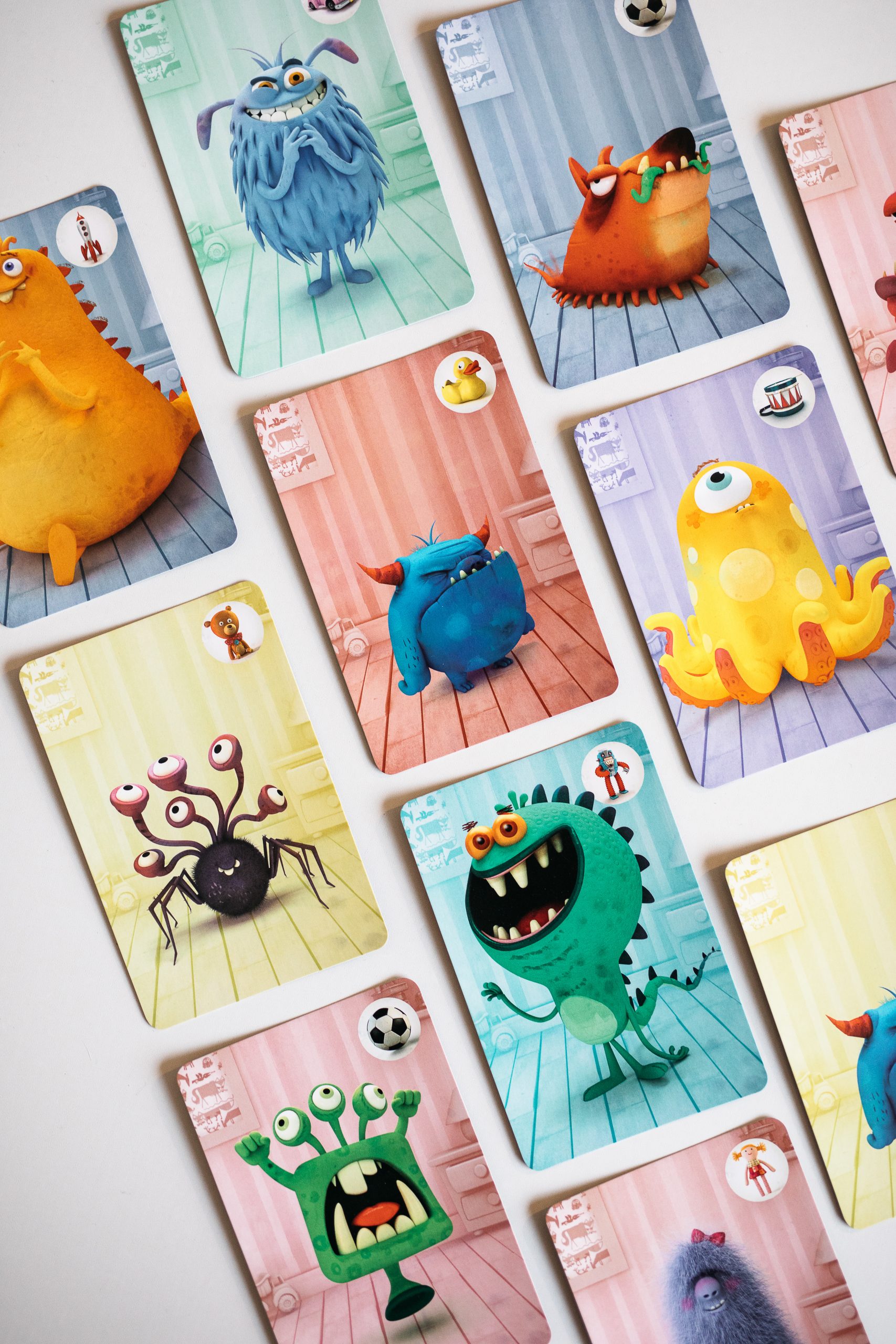 Au placard les monstres! Retrouve les bons jouets pour effrayer les monstres et les faire fuir dans le placard. Fais équipe avec ta famille et tes amis dans ce jeu de mémoire coopératif. À son tour, on tourne une tuile dans l’espoir de retrouver un jouet effrayant un monstre et ainsi l’envoyer au placard. Si on fait trop d’erreurs, les monstres s’accumulent autour du lit et peuvent remporter la partie! Un jeu de la gamme Petits monstres.