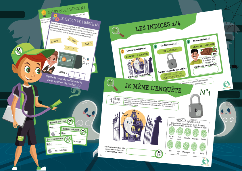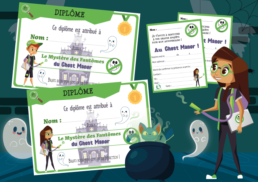 Découvrez notre jeu d’enquête « Le Mystère des Fantômes du Ghost Manor » ! Téléchargez maintenant un kit d’énigme policière pour Halloween ou pour un anniversaire thème « Ghostbusters ». Offrez à votre enfant et ses petits camarades une incroyable aventure dont ils sont les héros, en les laissant enquêter sur le mystère qui plane sur la ville de Strangetown, près de New-York !