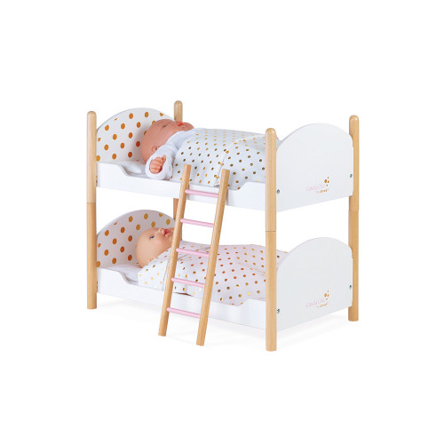 Ces 2 magnifiques lits superposés aux reflets scintillants sont idéaux pour border ses poupons et les emmener doucement au pays des rêves. Ils sont amovibles et peuvent donc être placés côte à côte ou l’un au-dessus de l’autre, avec une échelle pour accéder au lit du haut. Avec leurs 2 oreillers, leurs 2 matelas et leurs 2 couvertures à pois dorés, ils sont parfaits pour prendre soin de ses poupons préférés ! Compatible avec les poupons jusqu’à 42 cm (poupon non fourni).