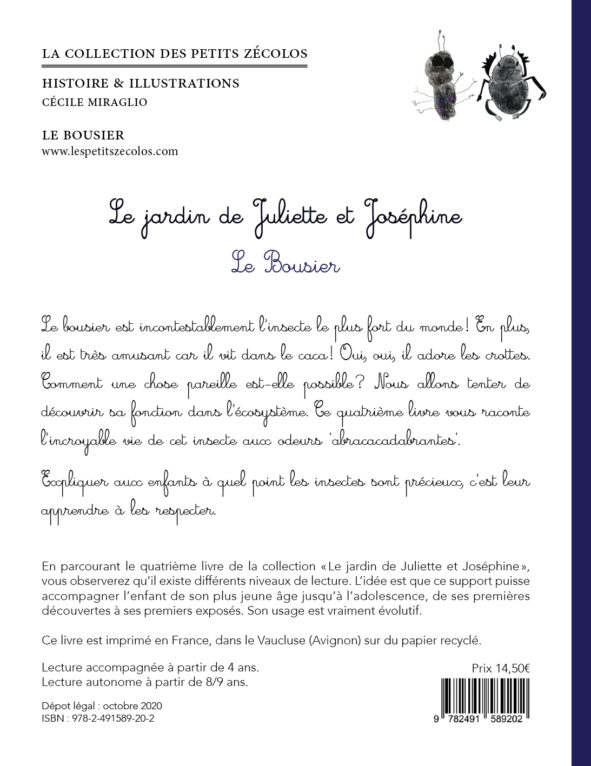 Expliquer aux enfants à quel point les insectes sont précieux, c’est leur apprendre à les respecter.Ce livre est imprimé en France, dans le Vaucluse (Avignon) sur du papier recyclé. Lecture accompagnée à partir de 4 ans – Lecture autonome à partir de 8/9 ans.