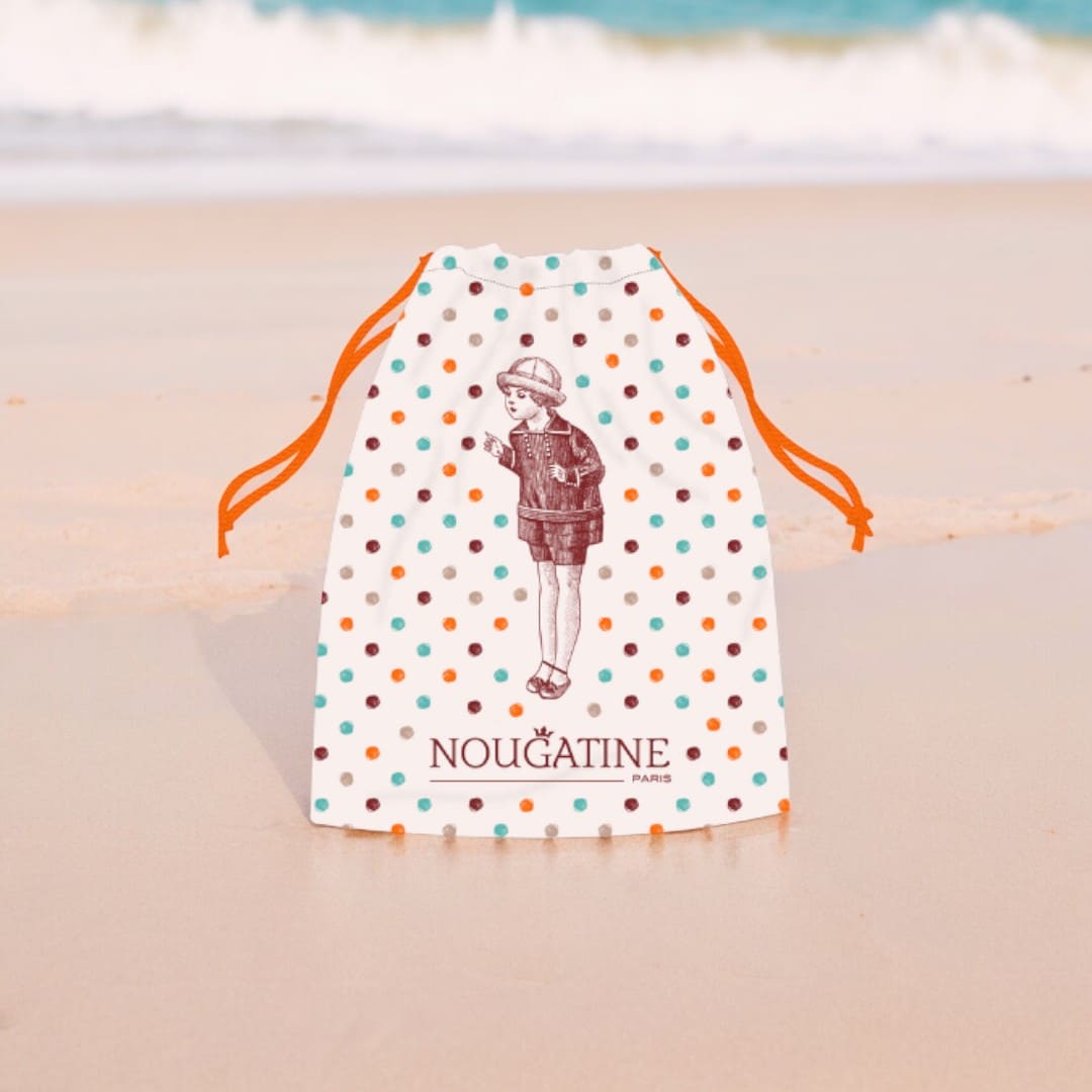 La pochette de plage NOUGATINE Paris est l’accessoire indispensable pour vos enfants ! Cette pochette est parfaite pour transporter leur DUO SOLEIL préféré : le spray solaire SUNNY et le lait corps NUTRIMIEL.