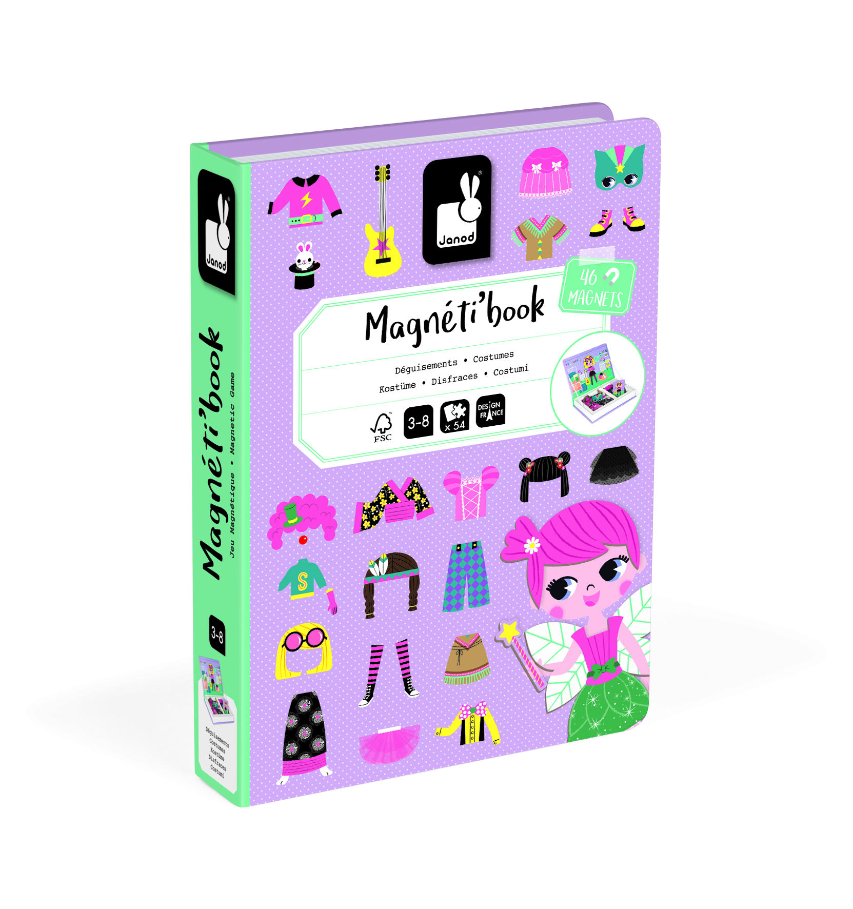 Les Magnéti’Book sont des jeux éducatifs malins qui se transportent et se rangent facilement ! Les enfants adorent créer des personnages et s’inventer des histoires. Avec les Magnéti’Book ça devient facile ! Les magnéti’book sont parfaits pour les longs trajets en voitures ou les attentes qui se prolongent. Avec ce Magnéti’Book Déguisements de Filles, l’enfant va pouvoir recomposer de belles tenues grâce à des magnets illustrés en s’aidant des cartes modèles. Ce jeu éducatif magnétique en carton se compose de 46 magnets et de 8 cartes. Ce produit est composé de matériaux certifiés FSC® et de matériaux contrôlés.