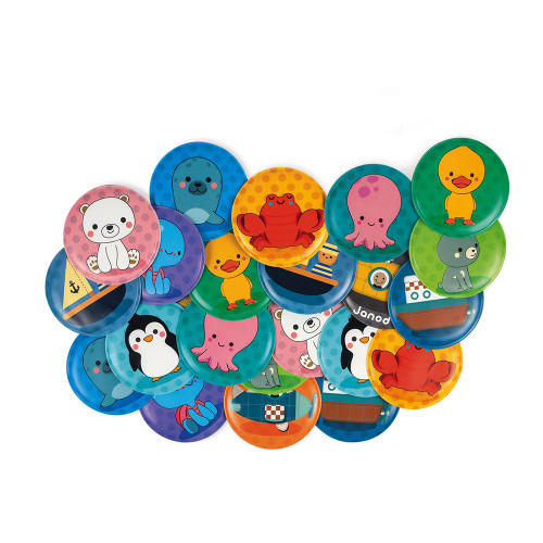 Jeu de mémo rigolo pour jouer dans le bain ! 24 cartes en mousse qui flottent et qui tiennent sur la faïence une fois mouillées. Prêts pour une petite partie ?! Un jeu qui développera la dextérité et la mémoire de votre enfant.