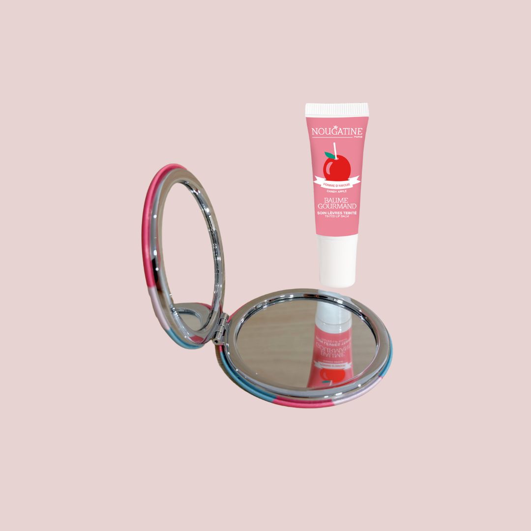 Le miroir de poche Nougatine Paris est l’accessoire idéal pour les enfants et pré-ados. Compact et léger, il se glisse facilement dans un sac ou une trousse.