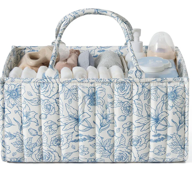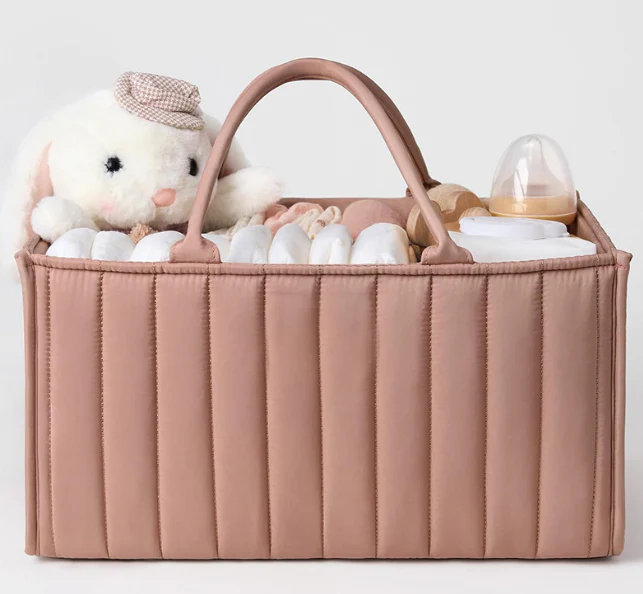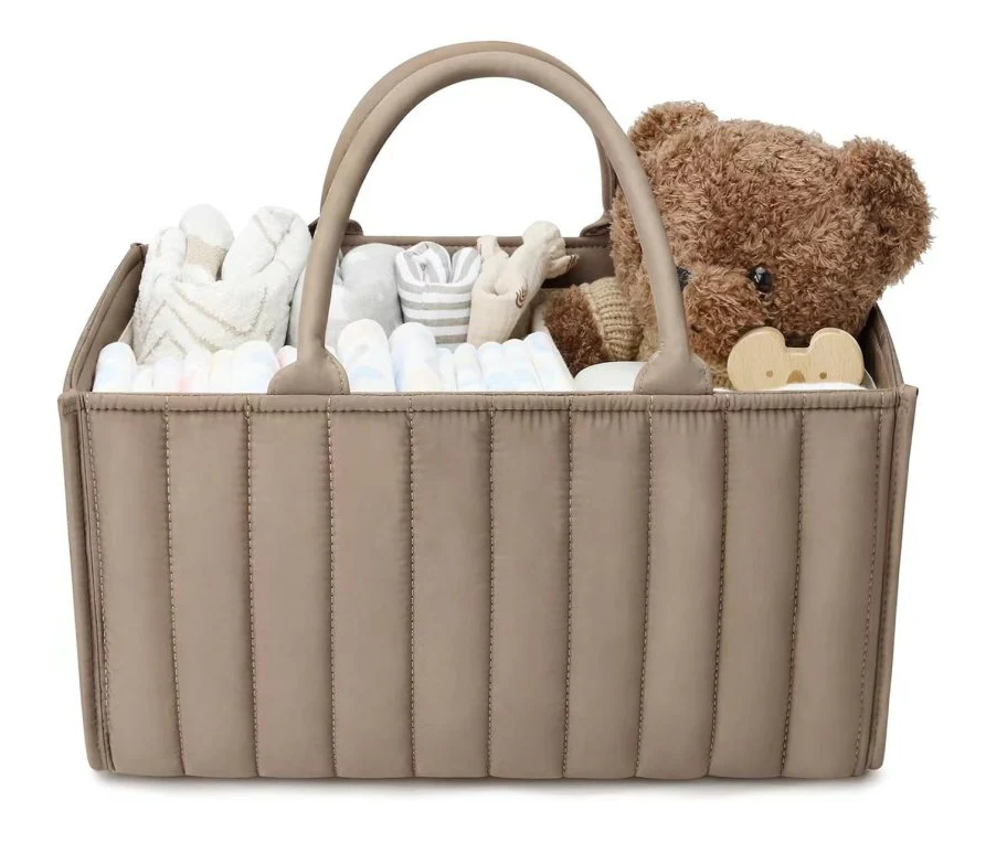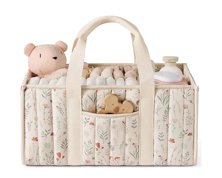 Cet organisateur en tissu est conçu pour regrouper au même endroit les accessoires nécessaires au quotidien : couches, lingettes, soins, vêtements légers ou petits jouets. Grâce à sa structure renforcée et à son design matelassé, il conserve sa forme tout en restant léger et simple à déplacer.
