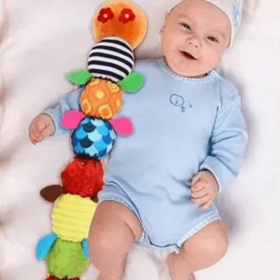 Notre peluche chenille occupe votre bébé pendant les longs trajets en voiture, en train ou en avion, réduisant ainsi l’ennui et l’agitation.