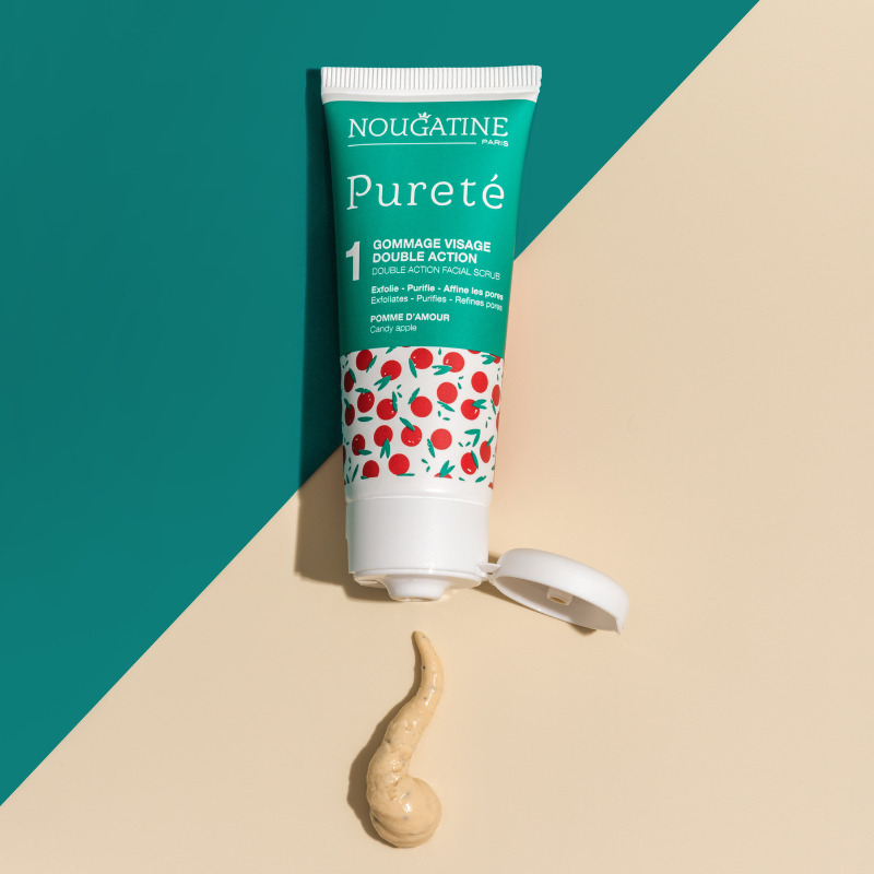 Le GOMMAGE VISAGE DOUBLE ACTION PURETÉ exfolie et purifie ta peau en douceur grâce à sa double action enzymatique et mécanique. Il élimine les cellules mortes et les impuretés efficacement sans dessécher ta peau.