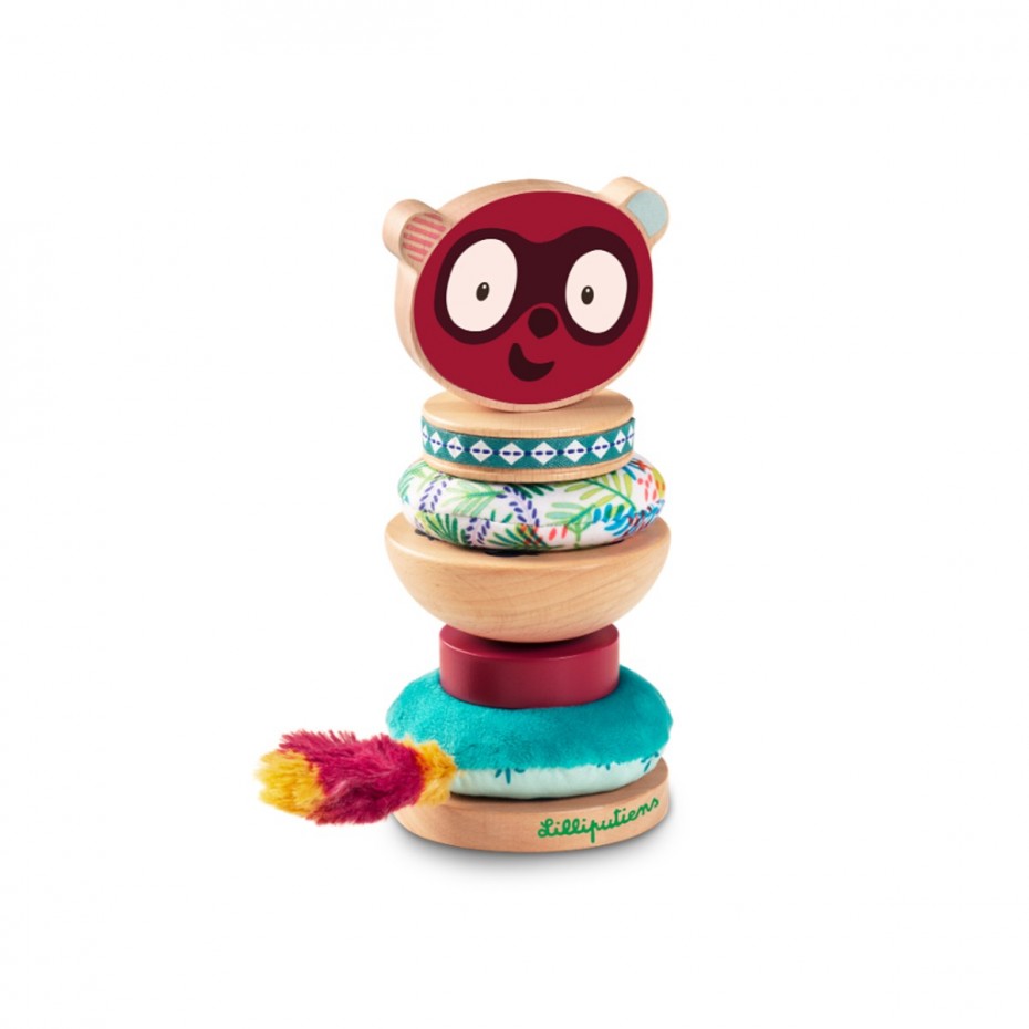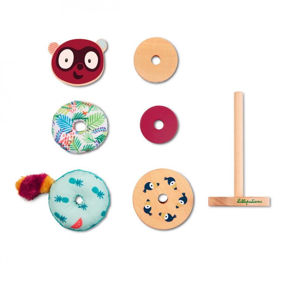 Jolie pyramide à empiler pour développer la motricité fine. Empilez les pièces de différents matériaux et de différentes couleurs de manière créative. La variété de formes, de couleur et de matériel stimulent les sens.