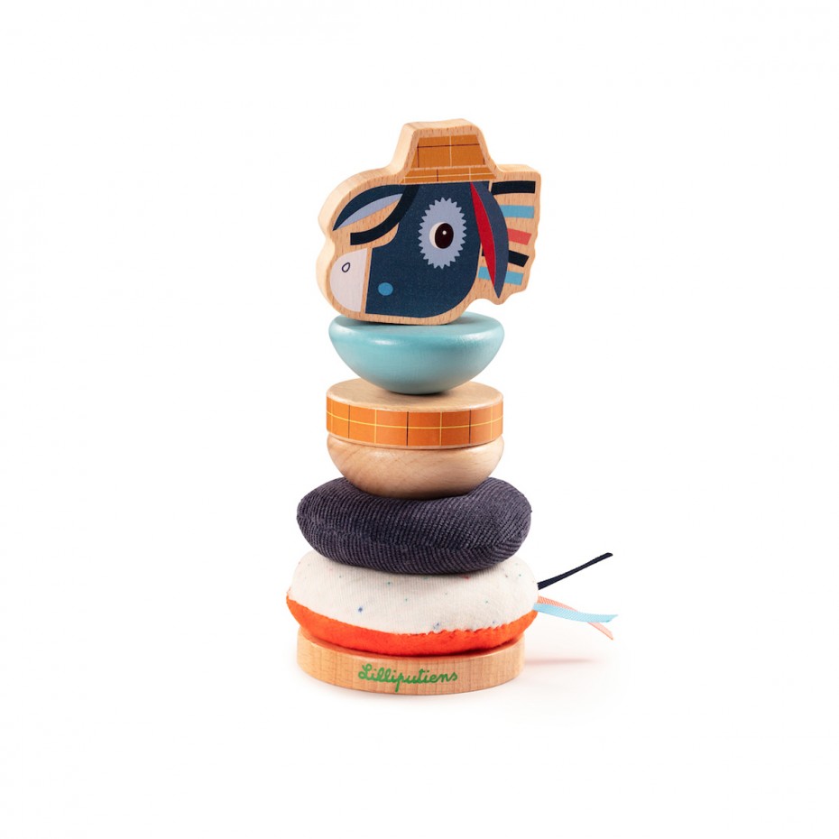 Cette pyramide à empiler originale et gaie, réalisée en différents matériaux, développe la motricité fine des petits bouts. Empilez les éléments et donnez libre cours à votre créativité. Les matériaux et les couleurs de nature différente éveillent leurs sens.