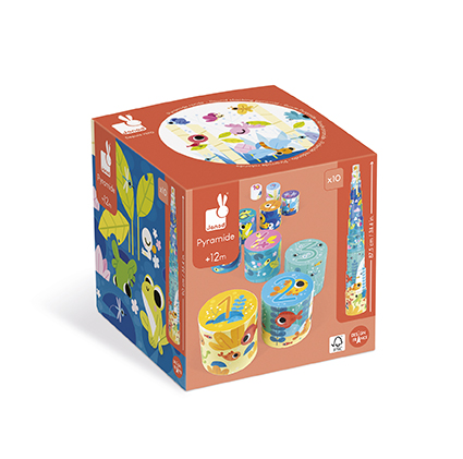 Cette pyramide en carton avec ses 10 éléments à empiler est idéale pour aider votre enfant dans l’apprentissage des chiffres. Il pourra empiler les éléments pour créer une magnifique pyramide sur le thème du monde secret de la mare et de ses habitants. Sur le dessus de chaque élément figure également un chiffre de 1 à 10, pour apprendre à compter. C’est un vrai plaisir de développer sa motricité et son imagination tout en s’amusant, mais le plus drôle … c’est de tout renverser !