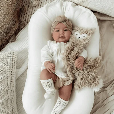 Notre réducteur de lit bébé innovant est conçu pour envelopper délicatement le corps de votre bébé, recréant la sensation rassurante du ventre maternel.