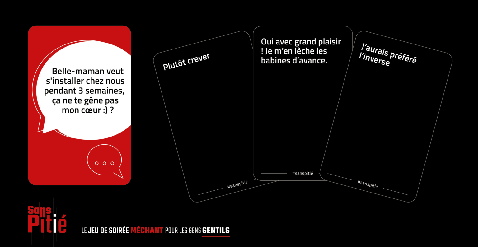Le jeu de cartes inventé par les créateurs de Juduku et ceux de Blanc-Manger Coco. Répondez à un simple texto ou email comme vous n’oseriez jamais le faire dans la vraie vie