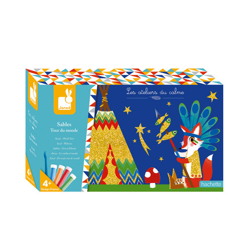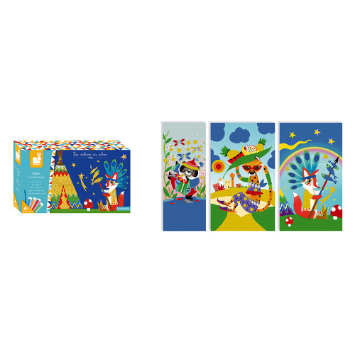 Découvre le monde avec ce coffret de cartes à sabler. Il suffit de soulever la partie prédécoupée avec l’outil prévu à cet effet et de saupoudrer de sable coloré pour obtenir un joli tableau. Ce set créatif permet de créer 3 jolis tableaux. Contient : 3 tableaux autocollants à décorer avec 4 tubes de sable et 1 spatule.