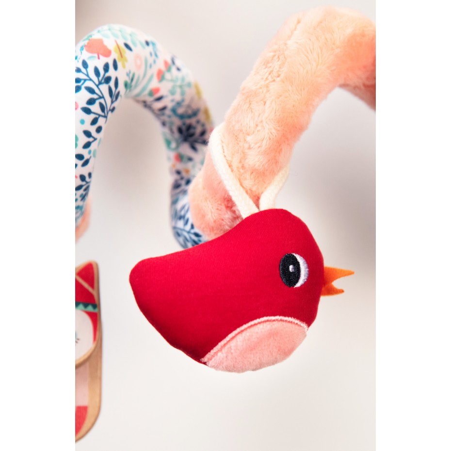 Des sons et textures étonnants, des couleurs contrastantes…, Cette spirale offre une multitude d’activités, conçues pour stimuler les sens de bébé pendant la promenade ou en voiture.