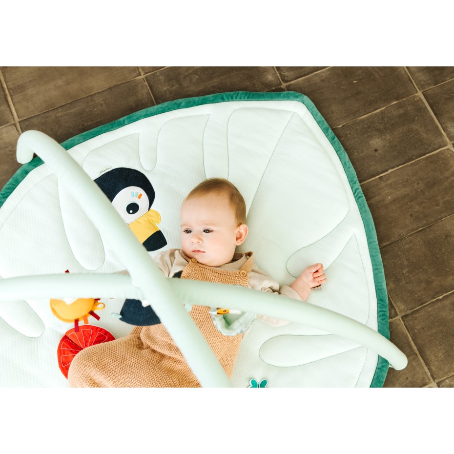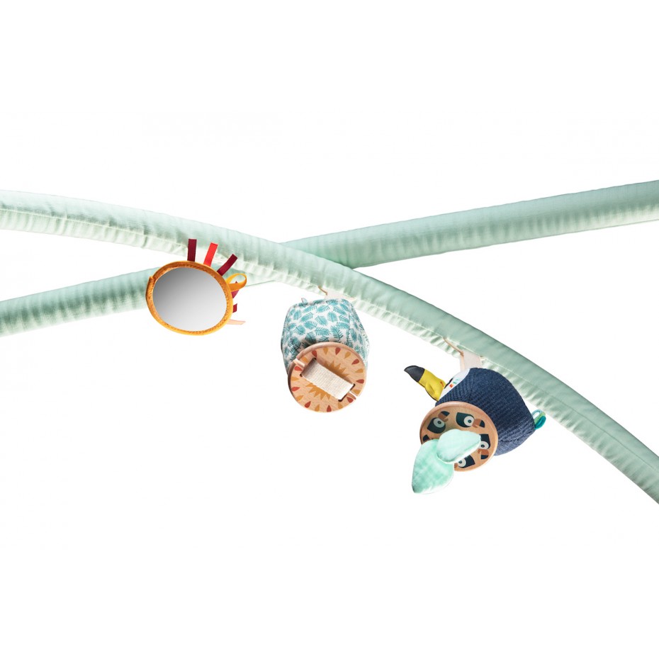 Ce tapis d’éveil tout doux en coton biologique offre de nombreuses activités. Trois hochets sont suspendus à l’arche. Les couleurs contrastées, ainsi que les nombreuses activités et découvertes éveillent les sens de bébé. Lorsque bébé grandit et que l’arche peut être ôtée, les hochets peuvent être attachés au tapis.