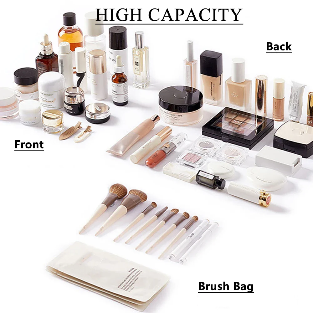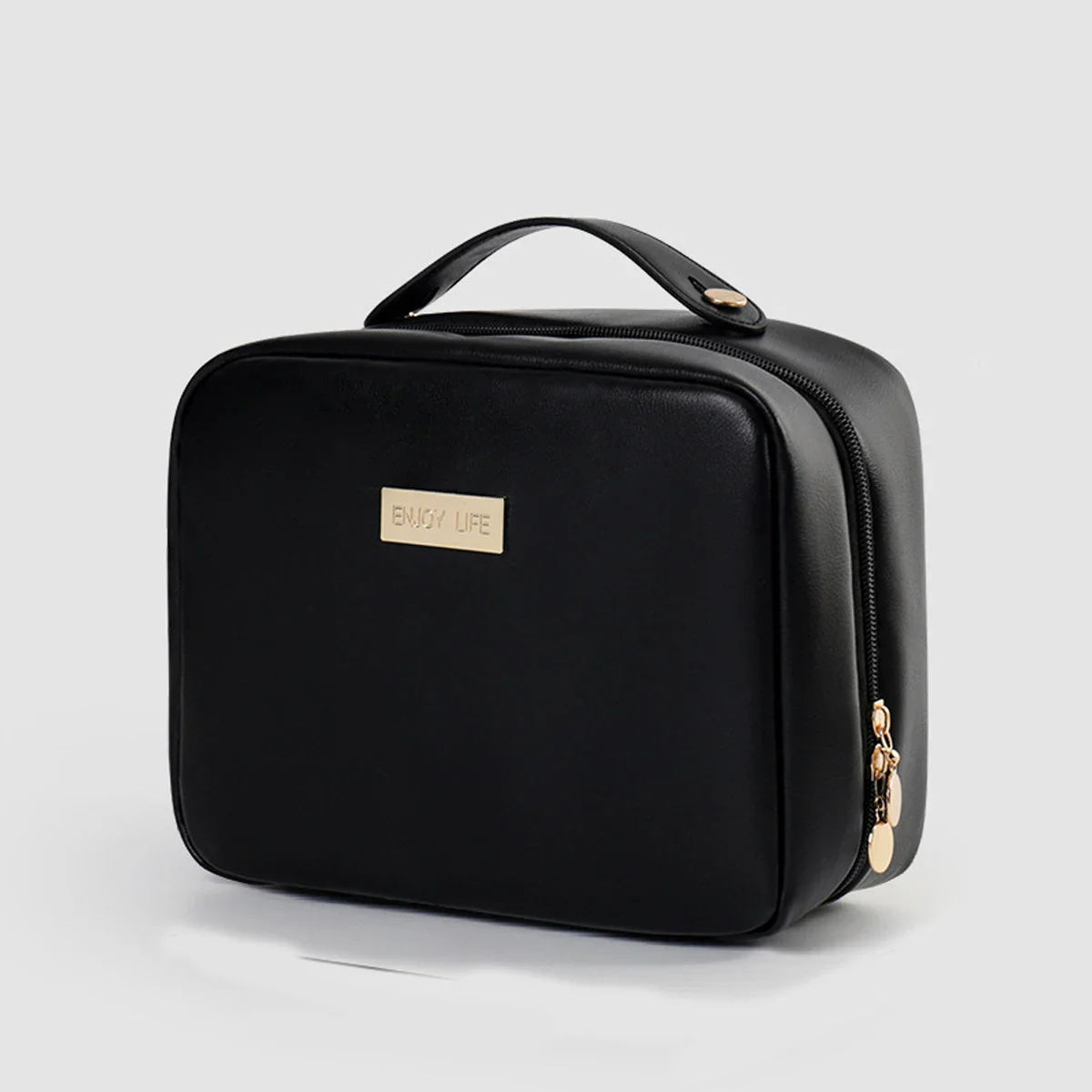 L’ouverture large de la trousse permet un accès facile à tous les produits. Les fermetures éclair bidirectionnelles de qualité supérieure assurent une ouverture et une fermeture sans effort. La poignée en cuir offre un transport confortable, que ce soit à la maison ou en voyage.