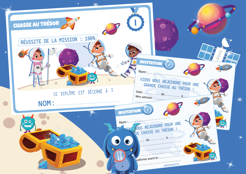 Découvrez notre chasse au trésor de ‘espace pour une activité anniversaire thème astronautes pour un moment en famille ou un anniversaire enfant sur le thème de l’espace.